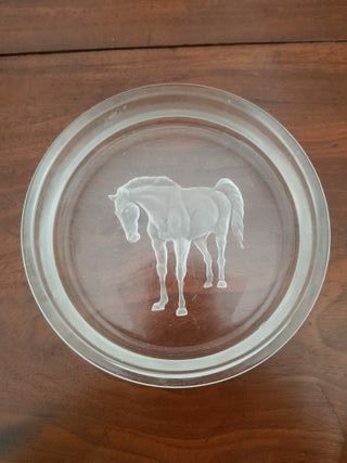 Cenicero de cristal tallado con caballo