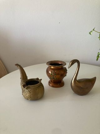 Lote 3 objetos latón: cisne, jarrón, cenicero