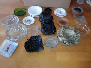 A 1 EURO CADA UNO se venden ceniceros de porche, cristal , madera , cerámica, piedra, granito, metal, con diferentes formas y colores. 17 en total