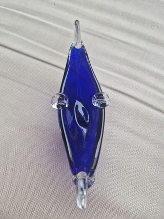 Precioso cenicero de cristal de Murano con forma de góndola. Es de color azul intenso y tiene detalles en cristal transparente. - De cristal de Murano. - Forma de góndola. - Color azul. - Pieza elegante
