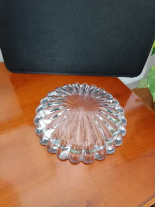 Elegante cenicero antiguo de cristal macizo. Su peso y diseño le dan un toque de distinción. - Material: Cristal. - Peso aproximado: 2 kg.