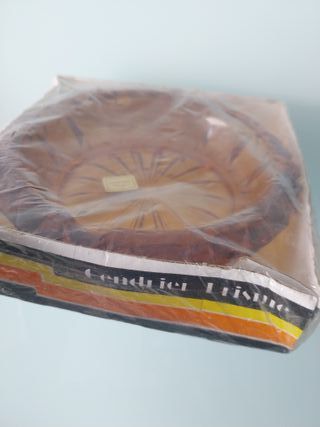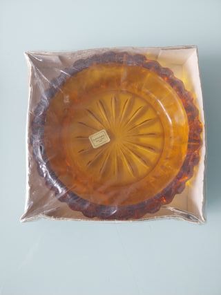 Cenicero de cristal frances vintage sin estrenar. Manca d' arques. Tiene 20 centímetros de diametro diámetro. En su caja y con su sello
