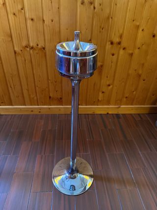 Elegante cenicero de pie, estilo vintage. Perfecto para añadir un toque retro a tu espacio. - Material: Metal. - Diseño: Estilo clásico de pie alto. - Color: Cromado brillante.