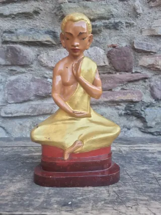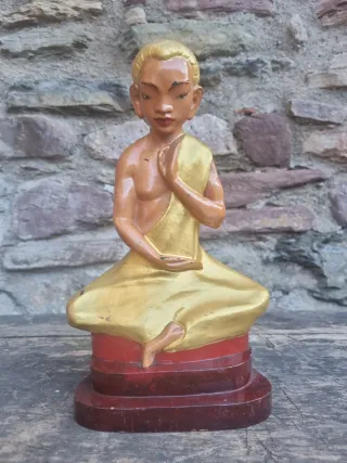 Figura decorativa de Buda en posición de meditación. Presenta un acabado dorado y detalles en rojo en la base. - Figura de Buda. - Base escalonada en color rojo. cristal,jarra,vaso,plato,vol,vajilla,recipiente,fuente,bandeja,copa,bote,pote,porcelana,juego de café,salero,botella,salsera,bombonera,pallarsantic.jarron.cenicero.aceitera.antiguo.antigua.antigüedades.vintage.coleccionismo. lote.antiguedad.retro.rústico.pallarsantic.cristal,jarra,vaso,plato,vol,vajilla,recipiente,fuente,bandeja,copa,bote,pote,porcelana,juego de café,salero,botella,salsera,bombonera,pallarsantic.jarron.cenicero.aceitera.licorera.vinagrera.ceramica.antiguo.