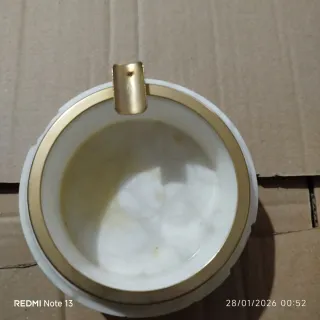 Elegante cenicero fabricado en mármol blanco con un distintivo borde metálico dorado. Su diseño clásico lo hace un accesorio decorativo. - Material: Mármol y metal. - Color: Blanco y dorado.