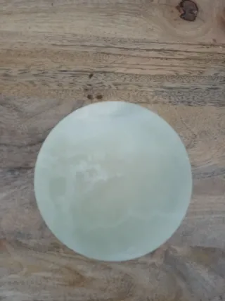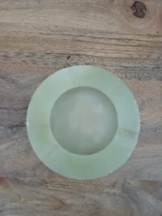 Elegante cenicero de onix verde, perfecto para añadir un toque de distinción a cualquier espacio. Su diseño circular y material natural lo hacen una pieza única. - Material: Onix verde - Diámetro aproximado: 12 cm.