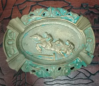 Cenicero de bronce con motivo de hípica.