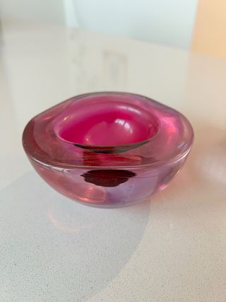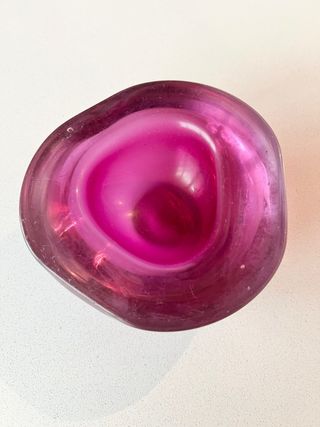 Elegante cenicero de cristal murano con un precioso tono fucsia. - Diseño vintage. - Material: Cristal. - Color: Fucsia Mínimas burbujas de fabricación. Sin rotos ni muescas. Detalles, medidas y peso en las fotos. Se hace envío muy protegido.