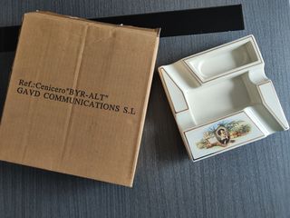 cenicero cigarrera ceramico de la marca de tabacos inglesa Byron nuevo en su caja,es de los años 80,la abrí para comprobar que estaba en perfecto estado.procede de una tabacalera que cerro.ideal para expertos y colecciónistas.dispongo de 4 unidades. medidas:20.5cm x 20.5cm.precio algo negociable,solo gente seria y realmente interesados. cigarro,habano,puro,cigarrero, estanco, Lucky Strike,LM,Chester,malboro, Camel,mando,consola, ordenador, portátil, juego, Game, videoconsola,TV, radio, cine,video.coleccion.mechero, Zippo,cargador.