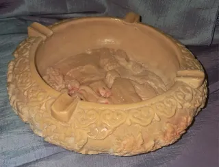 Cenicero antiguo marmolina escena oriental pesado