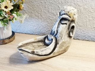 Cenicero de piedra vintage con cara de salvia barbuda tallada a mano, mediados del siglo XX, muy buen estado, en marmol o marmolina medidas en la imagen Rara pieza antigua de piedra ,.podría usarse cómo cenicero o dejar las llaves , muy trabajada y definida . Arte decoración fase lámpara iluminación aplique cuadro marco vintage opalina Tiffany antic, vintage, retro, new age, brocante, techo, aplic, globo, pantalla, iluminación, atrezzo, decoración, antiguo, faro, despacho, mesa, oficina, indústrial, pop art, stilnovo, space age, sost - Material: Alabastro - Estilo: Art Nouveau - Forma: Rostro masculino - Perfecto para decoración.