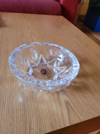 Cenicero de cristal, pesado. En la segunda imagen se ven los ligeros arañazos de su interior, por eso lo dejo más barato. 14 cm diámetro exterior. - Material: Cristal. - Marca: Val Saint Lambert.