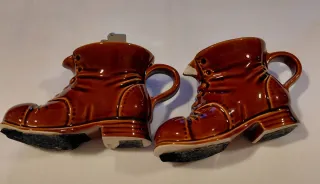 Conjunto vintage de mechero y cenicero con forma de botas, de los años 70. - Diseño original en forma de botas. - Color marrón brillante.