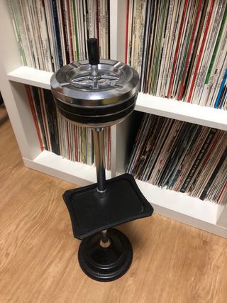 Cenicero de pie con un diseño clásico y funcional. Perfecto para cualquier espacio. - Acabado cromado brillante. - Bandeja para el paquete wiston. - Base estable.