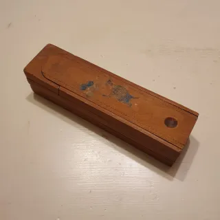 Antiguo plumier de madera con tres pisos, poco común. El piso central tiene una cerradura oculta, pero no dispongo de la llave. Necesita restauración ya que algunas piezas tienen holgura y otras rozan un poco. Ideal para coleccionistas o como pieza decorativa. Mide aproximadamente 24x6x6.