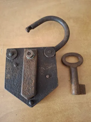 Cerradura antigua de hierro con llave