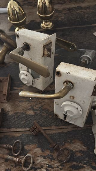 Lote de cerraduras,pomos ,etc antiguos Precio por el lote Ver fotos No bajo precio