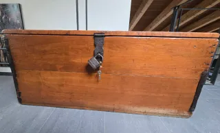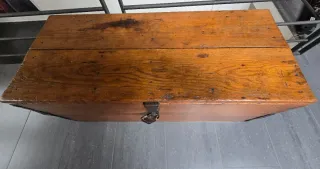 Baúl antiguo de madera con cerradura original.