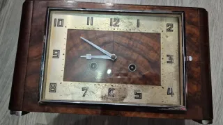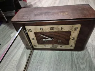 Elegante reloj de mesa con diseño clásico de cuerda para restaurar,toca las horas, acabado en madera. - Caja de madera con cerradura para mecanismo relogeria - Marco metálico con cristal protector para manecillas