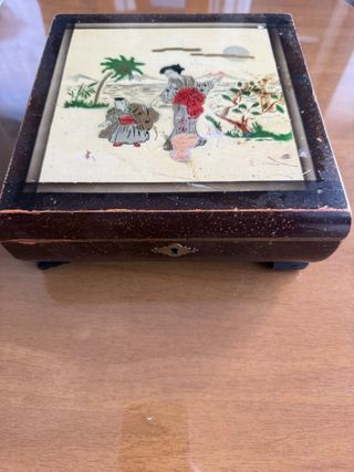 Joyero antiguo madera con escena oriental