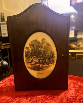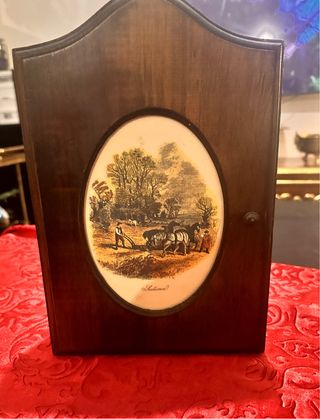 Curioso mueble portallaves de madera antigua - Marco de madera oscura, muestra una escena de arado de la serie “The seasons” precisamente “Autumn” (otoño) comprado en Holanda y ha estado como objeto decorativo solo lleva un leve e inapreciable descaste de la madera por la parte de atrás, que no deja que este objeto sea realmente bello a un precio increíble. - Detalle de cerradura lateral por imán - Para 6 llaves - Tapa de madera y cristal Medidas: Ancho: 20 cm. Fondo: 6 cm. Alto: 31 cm
