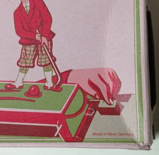 Juguete de golf vintage de hojalata, fabricado en Alemania. Un clásico para coleccionistas. - Diseño de golf con figuras. - Incluye caja original.