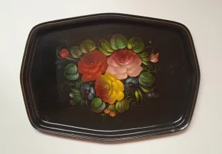 Antigua bandeja metálica rusa con motivos florales.Sello.En buen estado,ver fotos. 🫱🏻🫲🏼Trato en mano. 📦Envíos:Wallapop y Pay Pal.