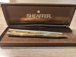 Elegante juego de bolígrafos Sheaffer chapado en oro. Se encuentran en perfecto estado. - Diseño clásico y atemporal. - Acabado metálico chapado en oro. - Con estuche original