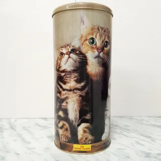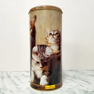 Lata metálica decorativa de Royal Canin con gatitos en diversas imágenes. En muy buen estado, vacía, sin deformaciones ni abolladuras, tapa intacta y cierre hermético. Perfecta para decorar, coleccionismo o para guardar pienso de tu mascota. - Material: Chapa de acero estañado. - Exterior: Litografia con diseños de gatos. - Interior: Metal limpio y sin corrosión. - Base: Con pequeñas señales de óxido. - SÓLO ENVÍO POR WALLAPOP