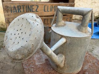 Antigua regadera de chapa galvanizada. 37 cm de alta y 20 cm de diámetro. "Vendo en mano"