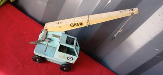 Se vende grúa de juguete de chapa, antigua y de fabricación inglesa. Es una pieza Tri-ang en buen estado para su edad, aunque presenta señales de uso. - Marca: Tri-ang - Fabricada en Gran Bretaña - Material: Chapa metálica - Diseño vintage