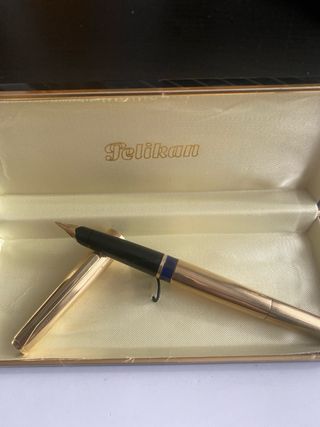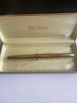 Estilografica Pelikan M60 de carga por pistón ( muy rara). Chapada en oro. Plumín de oro macizo . En su caja original