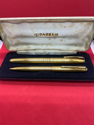 Estilografica y portaminas 0,7 Parker 51 signet (chapado en oro). Carga aerometrica. Estuche incluido. Industria Argentina . El estuche tiene algunas manchas del tiempo