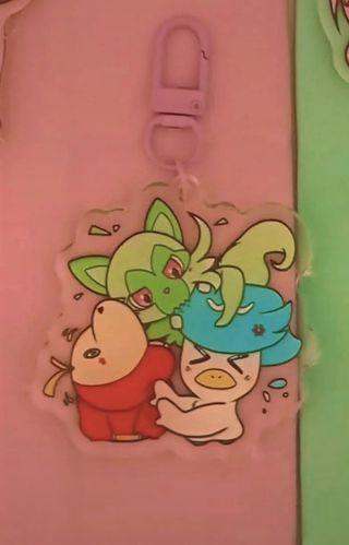 Llavero Pokémon Escarlata y Púrpura Starters de 6,35 cm diseñado por mi (Sanabe Art). Diseño diferente de doble cara acrílico con enganche a juego. Con la compra de este llavero se incluye: Llavero,bolsa de color y chapa (a elegir mediante chat).