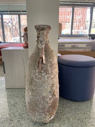 Esta ánfora de mar, es replica exacta de un ánfora antigua S.I a.C. Recogidas en las costas de Libia, y que se usaban para transportar vino. Pasan por un proceso de 5 años sumergidas en el Cabo de Gata; Armería. - Material: Cerámica. - Aspecto: Cubierta de depósitos marinos - Certificado con numero de serie - Chapa con descripción
