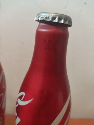 Bonitas botellas de Coca-Cola de edición limitada con motivo del 125 aniversario de la marca. Son dos botellas de aluminio de 250ml, en color rojo y con el logo conmemorativo. Ideales para coleccionistas. - Botellas de aluminio. - Edición limitada 125 años. - Color rojo. - 250ml. COLECCION Se abrieron para sacar el contenido y se volvieron a tapar con las chapas originales Tenemos más cosas disponibles en el perfil por si te interesa un lote y así ahorrar en el envio Podemos entregar en mano en El Prat de Llobregat y en BCN ciudad cerca del Centro Comercial Gran Vía 2 o de la rotonda de la carbonera en El Puerto de Barcelona