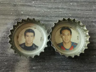 Dos chapas de colección de Coca-Cola con imágenes de jugadores del FCB. Iniesta y Victor Valdes - Incluye dos chapas. - Diseños de jugadores del FCB.