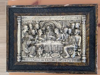 Cuadro antiguo de la última cena , en buen estado general, con algún saltado en el marco de madera , ya pintado , ver fotos , modelos de cuadro al que se le mueve la mano , ver fotos, medidas : Última cena medidas totales 79,5 x 56 , medidas de la chapa 65 x 42 , posibilidad de entré en mano , consultar..