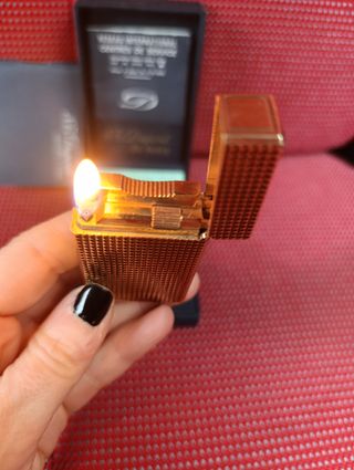 Icónico encendedor Dupont original años 70 chapado en oro. Viene con su caja original y las instrucciones. Muy poco uso