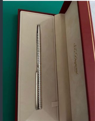 Vendo bolígrafo S.T. Dupont clásico acabado chapado en plata (plaque argent), modelo liso (anneau). Incluye estuche original. Mecanismo funcionando perfectamente. Ideal como regalo o pieza elegante para uso diario. 🔹 Marca: S.T. Dupont 🔹 Acabado: Chapado en plata (no plata maciza 925) 🔹 Modelo: Liso clásico 🔹 Incluye: Estuche original 🔹 Estado: Muy bueno