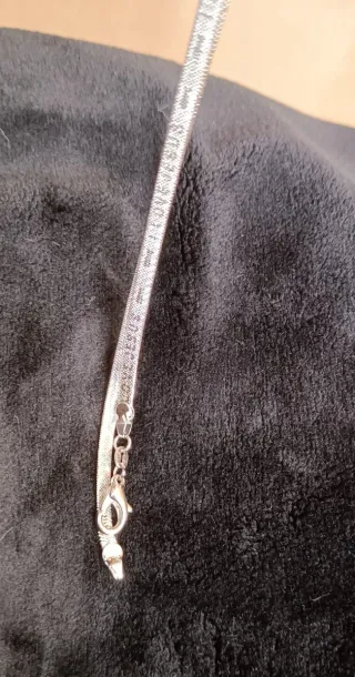 Collar gargantilla Unisex, de estilo vintage. - Diseño de cadena de espiga o serpiente plana, chapada en oro blanco de 18 K, según sello autenticidad de la cadena. Diseño con patrón " I Love Jesús", que se ve en tornasol a lo largo de todo el collar . De 44 cm de largo. En perfecto estado.