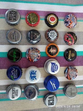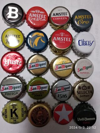 Colección de chapas de cerveza de diferentes marcas y diseños. 100 chapas surtidas y distintas - Variedad de estilos y colores. - Ideales para coleccionistas.