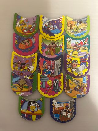 Coleccion de 15 chapas de cartón Looney Tunes de la marca Matutano. Están en buen estado. Son 15 chapas en total. Muestran diferentes personajes de Looney Tunes en diversas escenas. Ideales para coleccionistas.