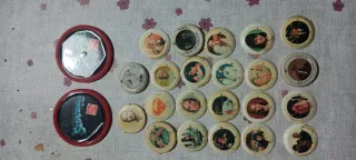 Conjunto de coleccionismo que incluye chapas y discos. De los 80 - Diseños variados. - Ideal para coleccionistas.
