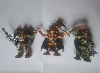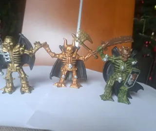 Lote de 3 figuras de la serie Skull Fighter de Chap Mei, fabricadas en 1994. - Figuras de esqueletos con detalles. - Incluye accesorios como hachas y espadas. - Diseños variados con capas y armaduras.