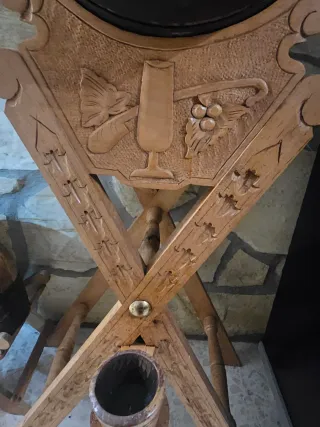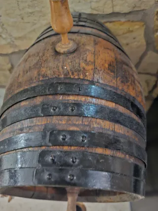 Botas de vino de madera con bandas metálicas.dedicada al artista jose merce - Material: Madera y metal. - Diseño tradicional.