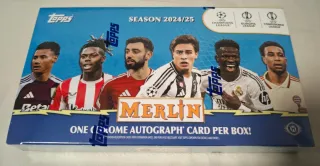 Caja de cromos Topps Merlin de la temporada 2024/2025. Contiene una tarjeta de autógrafo. - Producto oficial Topps. - Temporada 2024/25. - Incluye 1 tarjeta de autógrafo por caja.