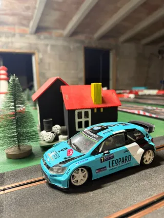 Coche de slot Volkswagen Polo WRC a escala 1:24. Modelo detallado con decoración Leopard. - Escala 1:24. - Decoración Leopard. - Réplica del Volkswagen Polo WRC.