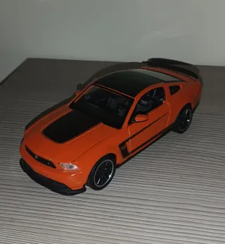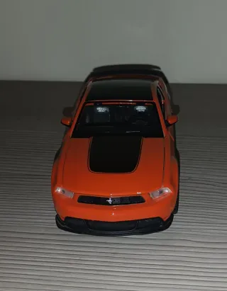 Réplica detallada del Ford Mustang Boss 302 a escala 1/24. - Color naranja con franjas negras. - Interior detallado.