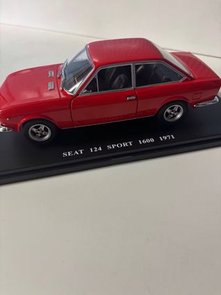 Réplica a escala 1:24 del SEAT 124 Sport 1600 de 1971. Un modelo detallado para coleccionistas. - Color rojo brillante. - Base expositora negra con el nombre del modelo y año. - Llantas abarht ( no 3D, con cubierta de goma) - Apertura de puertas - Regalo vitrina -NO OFERTAS